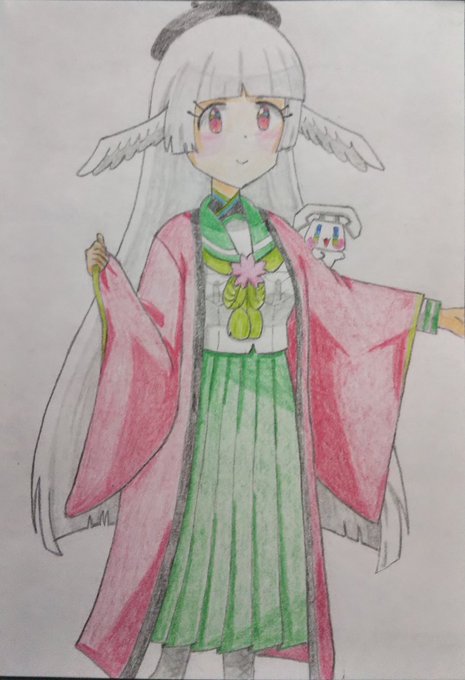 #5月11日は有楽町たん擬人化6周年 お祝いにイラストを描きました! #有楽町たん 、おめでとうございまーす!🎉🎉🎉🎂✨🎁✨ヽ(≧▽≦)ノ🦢🦢🦢🐈️ #ビッカメ娘 ( #ナイセン ) #ビッカメ娘を描き隊 #模写 #イラスト #色鉛筆 #絵描きさんと繫がりたい