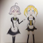 #5月14日は八王子たん擬人化7周年 #5月14日は柏たん擬人化7周年 お祝いにイラストを描きました! #八王子たん 、 #柏たん おめでとうございます!🎉✨🎁✨🎏🐈️ #ビッカメ娘 ( #ナイセン ) #ビッカメ娘を描き隊 #模写 #色鉛筆 #ファミマプリント #絵描きさんと繋がりたい