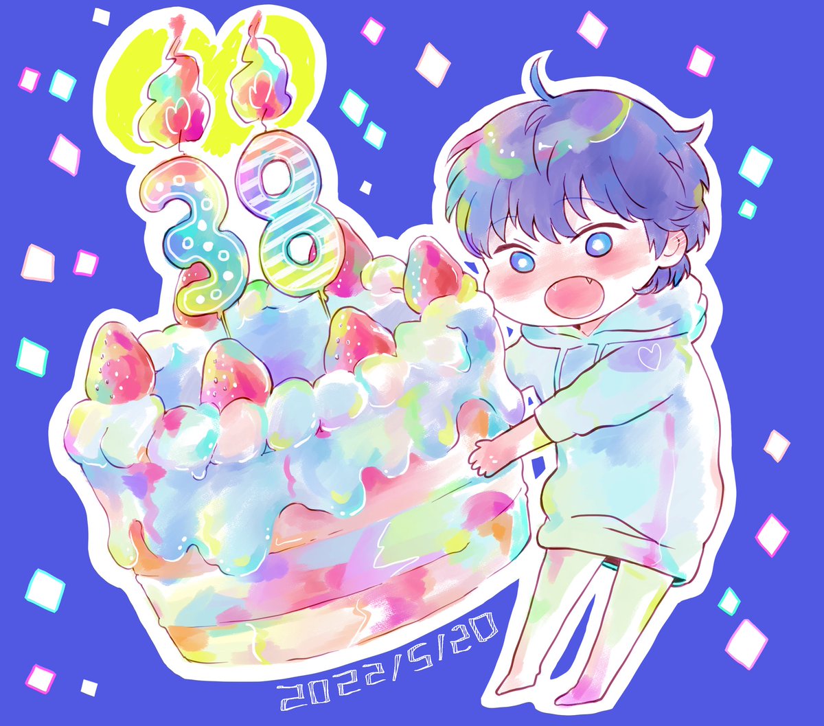 遅刻! ホールケーキでお祝いが当たり前だったしま家。そんなの見たことねーやっていういぶきへ、クソデカ感情送ってくださいおめでとう!!!!!!健やかであれ。いつまでも走り続けて欲しい。 #伊吹藍誕生祭2022 #5月20日は伊吹藍の誕生日