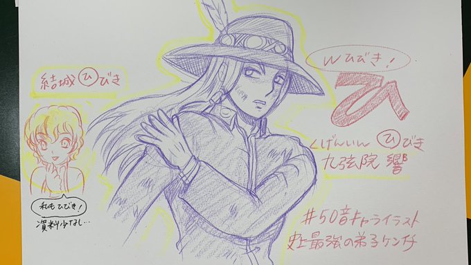 #君は008 #50音キャライラスト 松江名俊先生作品のキャラクター名前で 「ひ」 史上最強の弟子ケンイチより Wひびき! 九弦院ひびきと ワルキューレ結城ひびきちゃん。 ジークフリートはクールな顔が かっこいいけど、どこか面白い。 次回は、「ふ」です。(о´∀`о)