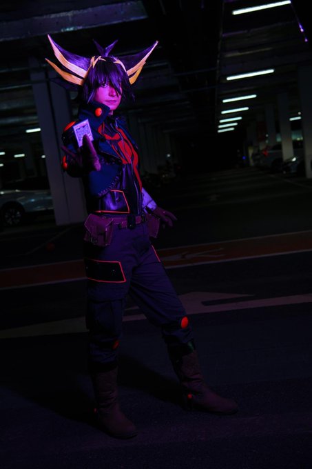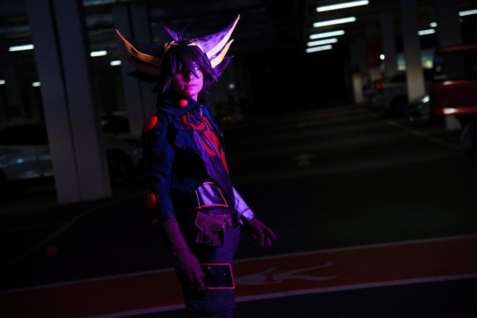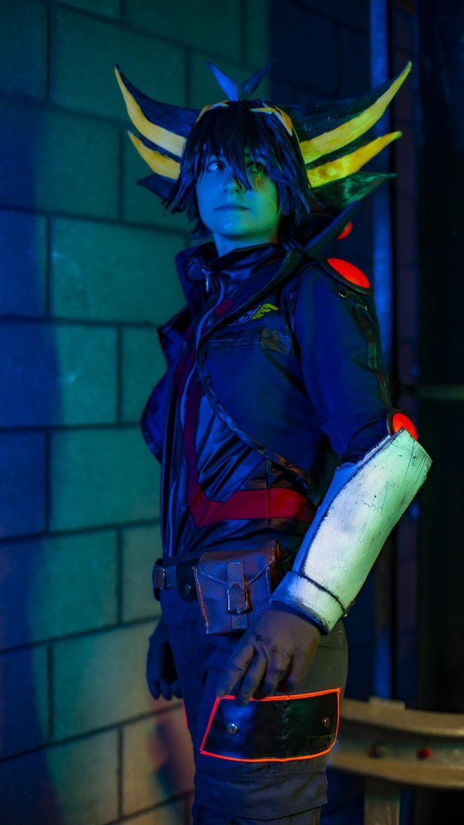 I love the cyberpunk aesthetic of 5ds a lot so we were trying to emulate that with some funky lighting! Photo: @matthewmccc #yugioh #yugioh5ds #cosplay #yugiohcosplay #yugioh5dscosplay #5ds #5dscosplay #yuseifudo #yuseifudocosplay #yusei #yuseicosplay