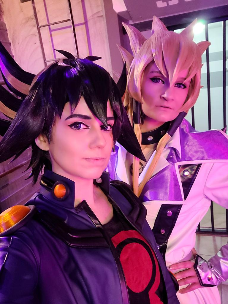 Happy #5Ds_15th_Anniversary 🎊 @Wheelerin_94 and I celebrate the day with a photo shoot @OH3_Studios 📸✨ #yugioh #5ds #yugioh5ds #yuseifudo #jackatlas #cosplay #yugiohcosplay #yugioh5dscosplay #yuseifudocosplay #jackatlascosplay