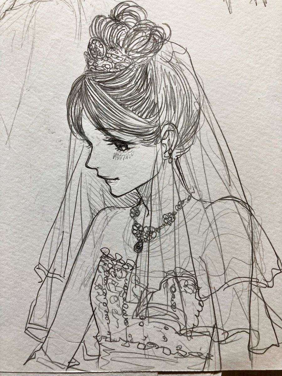 企画1枚目〜! めっかわに描けた🥰 #イラスト #絵柄が好みっていう人にフォローされたい #ジューンブライド #6月の花嫁 #ウエディングイラスト #うちの子ウェディングファッションショー2022 #めろのイラスト🌼