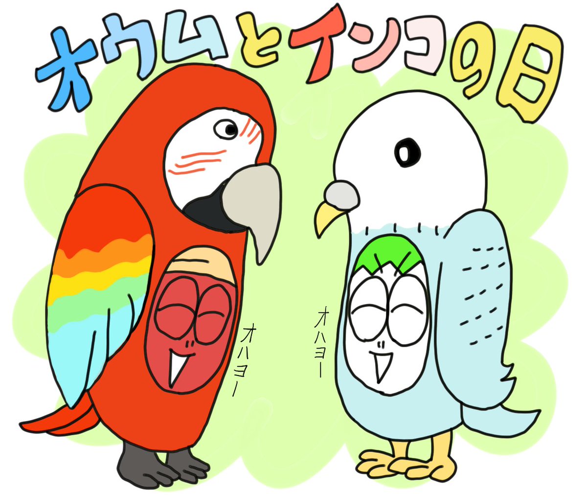 #今日は何の日 ————— #6月15日 ————— #オウムインコの日 #オウム・インコの日 沢山の種類が…!! 図鑑が欲しいな🦜 ————— #おっぽーイラスト #おっぽーの今日は何の日 #おっぽさんとこっぽちゃん #1日1絵