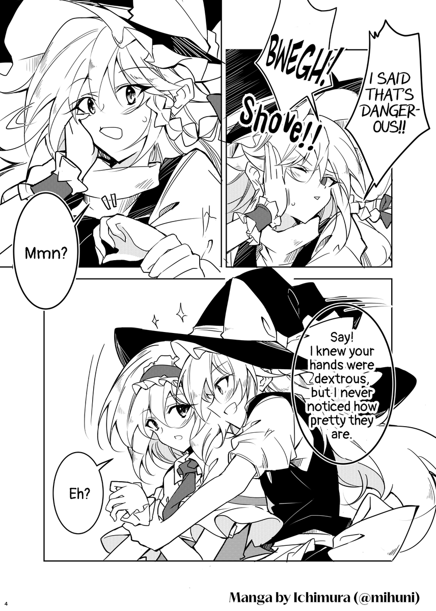We've translated this short manga by Ichimura (@mihuni)! Enjoy! twitter.com/mihuni/status/… Translated with permission from the artist. #TouhouTranslations #東方英訳 #東方Project #6月16日はマリアリの日