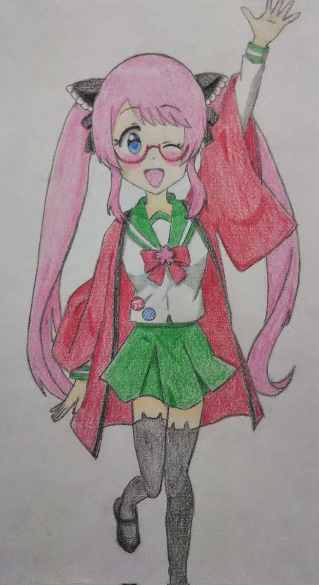 #新しいプロフィール画像 #ビッカメ娘全員アイコンチャレンジ (14/45) 14人目は #アキバたん です! アキバたん、今日6月22日がお誕生日ですね! おめでとうございます!(*≧∇≦)ノ🎉🎉🎉😸🐈️ #6月22日はアキバたんのバースデー #ビッカメ娘 ( #ナイセン ) #模写 #色鉛筆 #絵描きさんと繫がりたい
