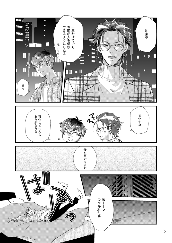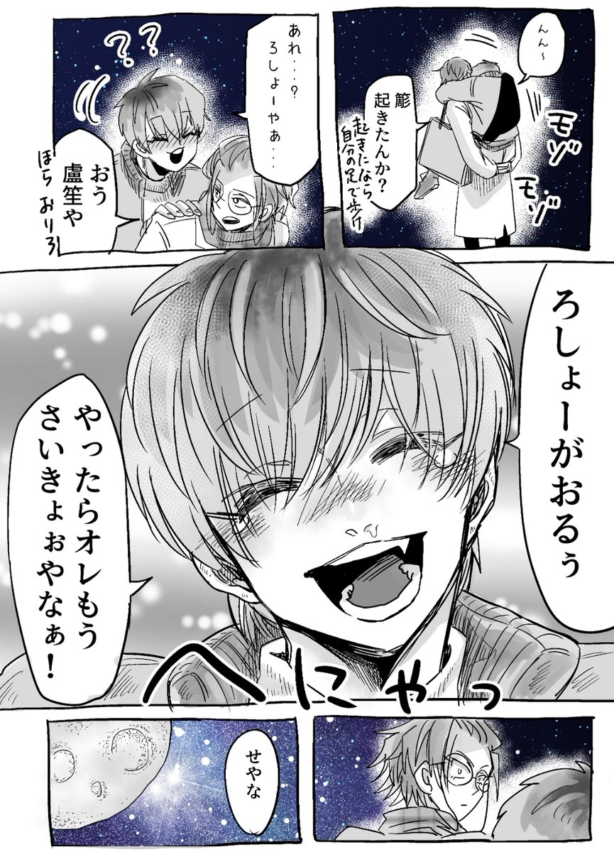 まだ再会してないろささの話 #6月3日はろささの日 2022年発行の再録本「おおさか賛歌」に収録した描き下ろし漫画です 今年中にweb再録しますと宣言してたのを思い出しせっかくなので今日…🙏 紙の本手に取ってくださった方ありがとうございました! (1/6)