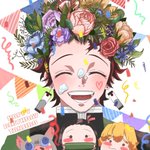 #竈門炭治郎誕生祭2022 #竈門炭治郎生誕祭2022 #7月14日は竈門炭治郎の誕生日 みんなに優しい炭治郎君、誕生日おめでとう‼️🎂 🎉happy birthday🎉 《遊郭編version》に関わった宇髄さん達と一緒にお祝いしている誕生日イラストです✨✨