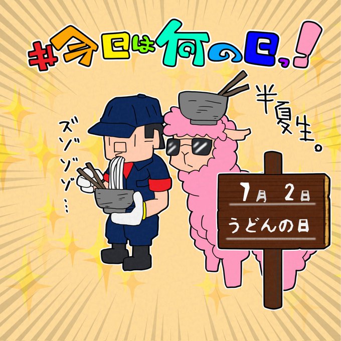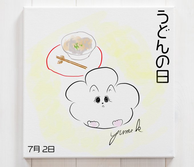今日はうどんの日 香川県地方では半夏生(7月2日ごろ)にうどんを食べて、労をねぎらう風習があり、本場さぬきうどん協同組合が制定したそうです。 #今日は何の日 #7月2日 #本場さぬきうどん協同組合 #イラスト #イラストのあるくらし #アートのあるくらし #yume.k #エレン #どれさぽ