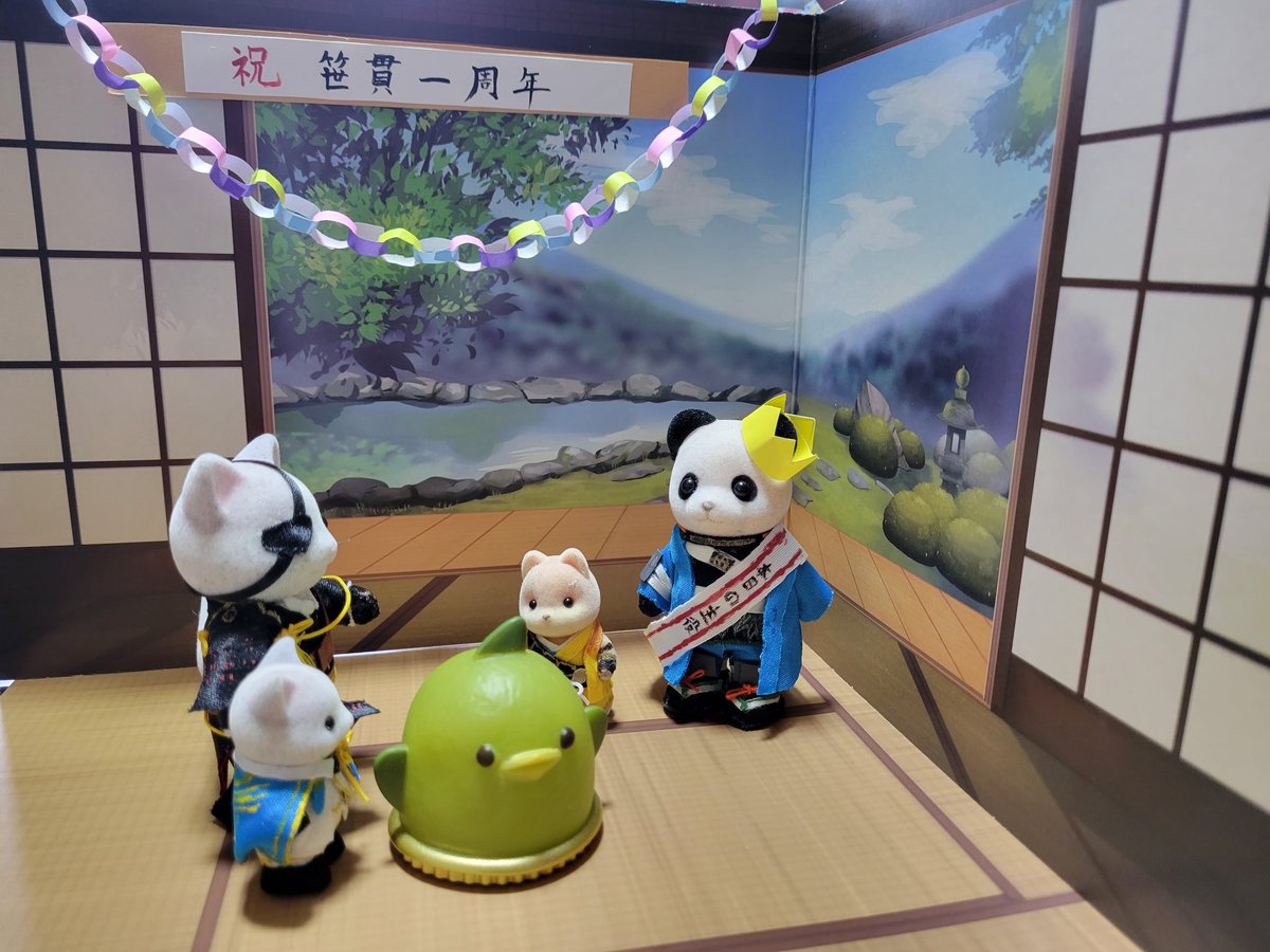 実装から一年。 大いに狂わせてくれてありがとう。 #7月26日は笹貫実装記念日 うちのイナバニアファミリー本丸でもお祝い㊗️ 光忠特製「プリンをババロアで包んだひよこの形ケーキ」をみんなで食べます🐤 #コスバニア #イナバニアファミリー