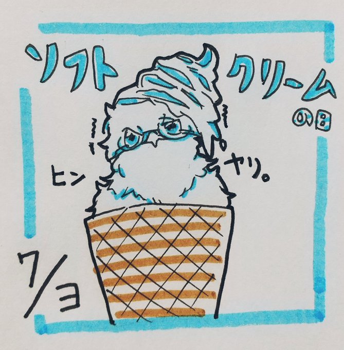 7月3日ソフトクリームの日🍦 私は最近毎日のようにソフを食べています😋 #今日は何の日 #イラスト好きな人と繋がりたい #お絵描き #鳥 #一日一絵 #ペン画 #7月3日 #ソフトクリームの日 #お絵描き好きさんと繋がりたい #日めくりカレンダー