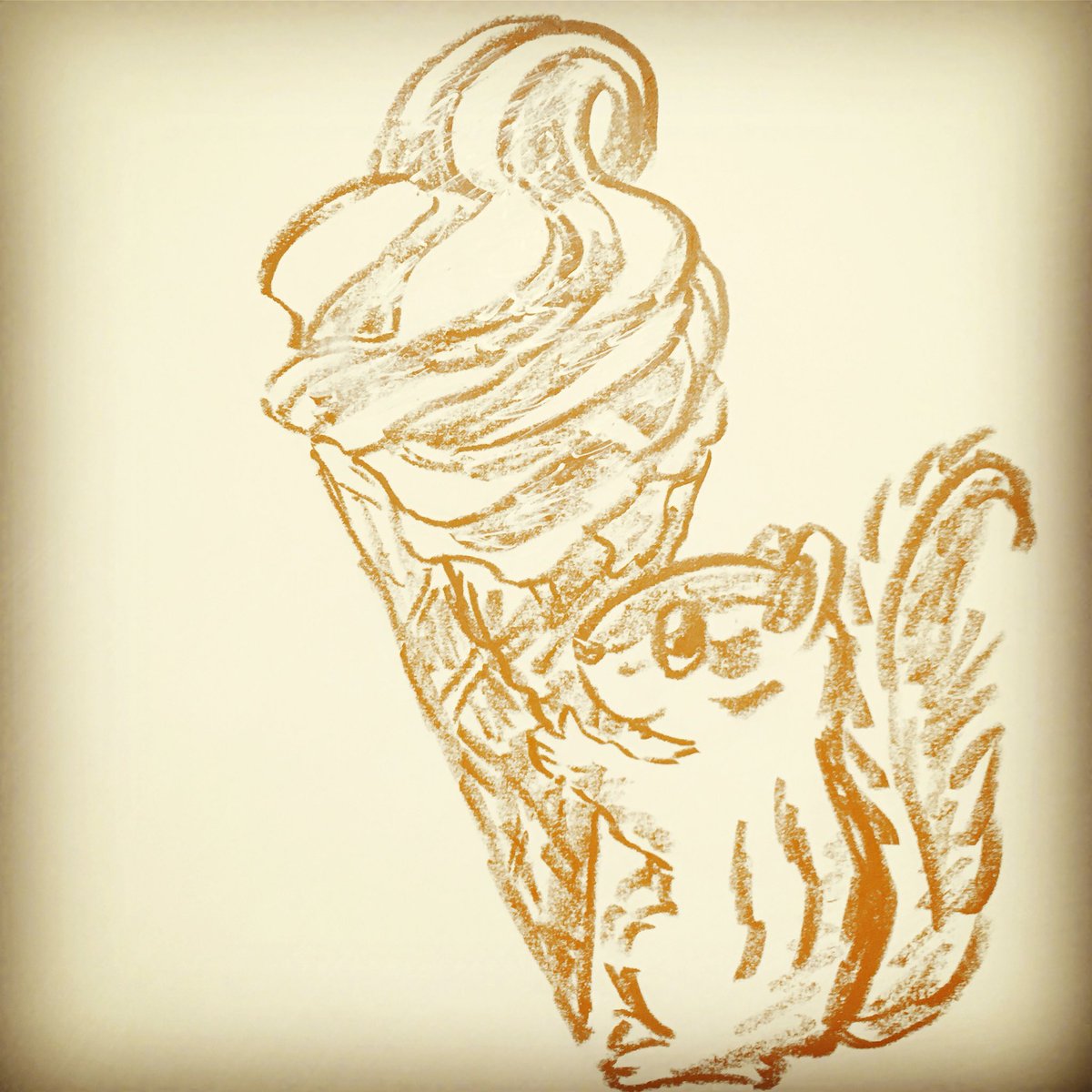 #1日1絵 #7月3日 の過去の絵。 #今日は何の日 #ソフトクリームの日 *リスに人間用の食べ物はNG。 4枚目 昨年の「リスの夢」。 #リス #シマリス #イラスト #illustration #illustrator