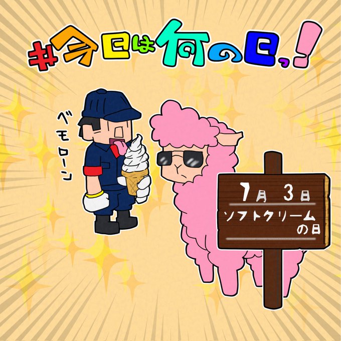 #今日は何の日 ————— #7月3日 ————— #ソフトクリームの日 コーンも美味しいよね🍦 ————— #おっぽーイラスト #おっぽーの今日は何の日 #おっぽさんとこっぽちゃん #1日1絵