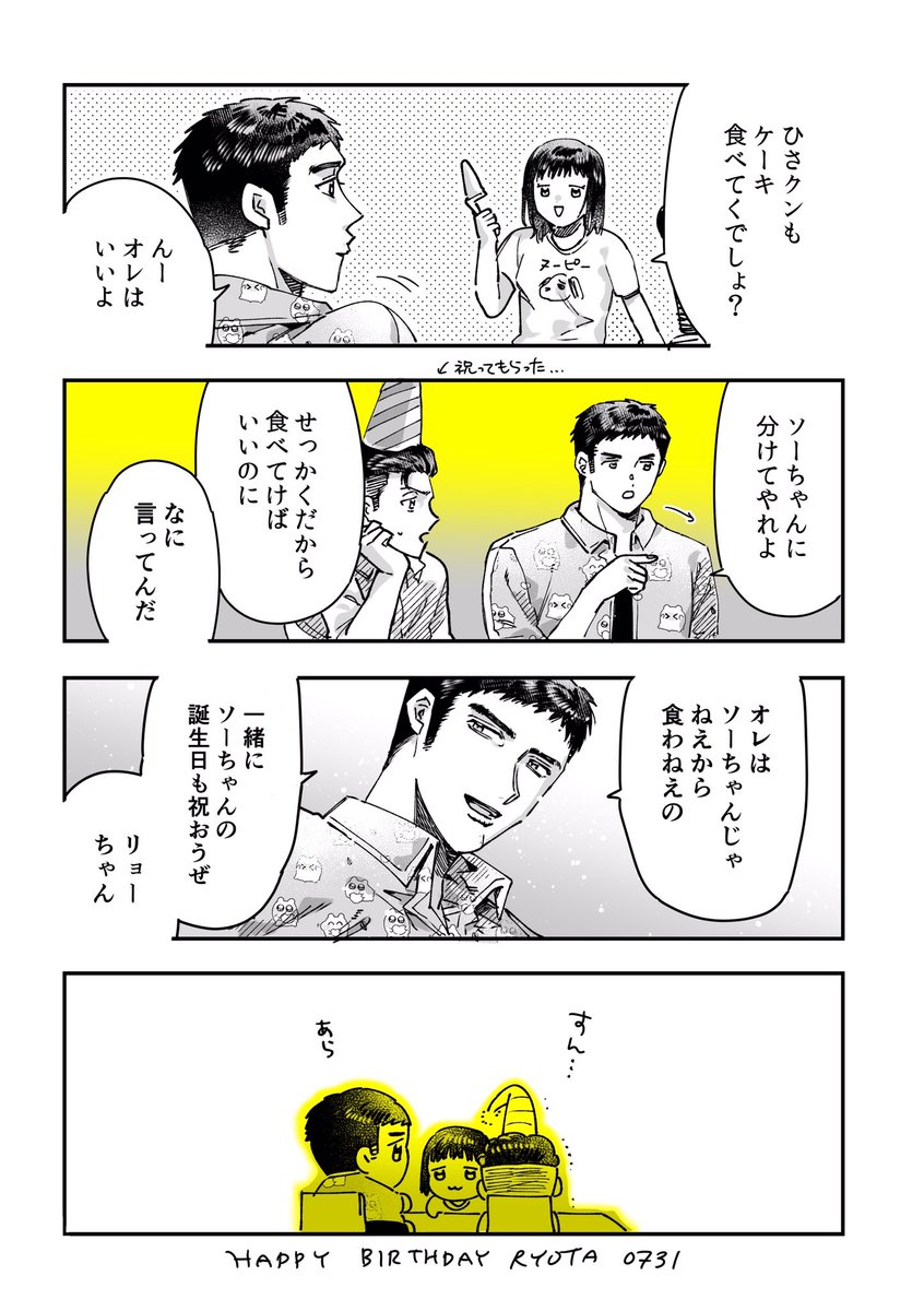 ミャギ誕生日おめでとう‼️‼️🎂 ミ#とミャギ家に祝ってもらえ~ッ!て言う漫画 ※ミ:大1設定です ※CP要素薄めですがリョ三畑産 #宮城リョータ生誕祭 #宮城リョータ生誕祭2023 #宮城リョータ誕生祭2023 #7月31日は宮城リョータの誕生日