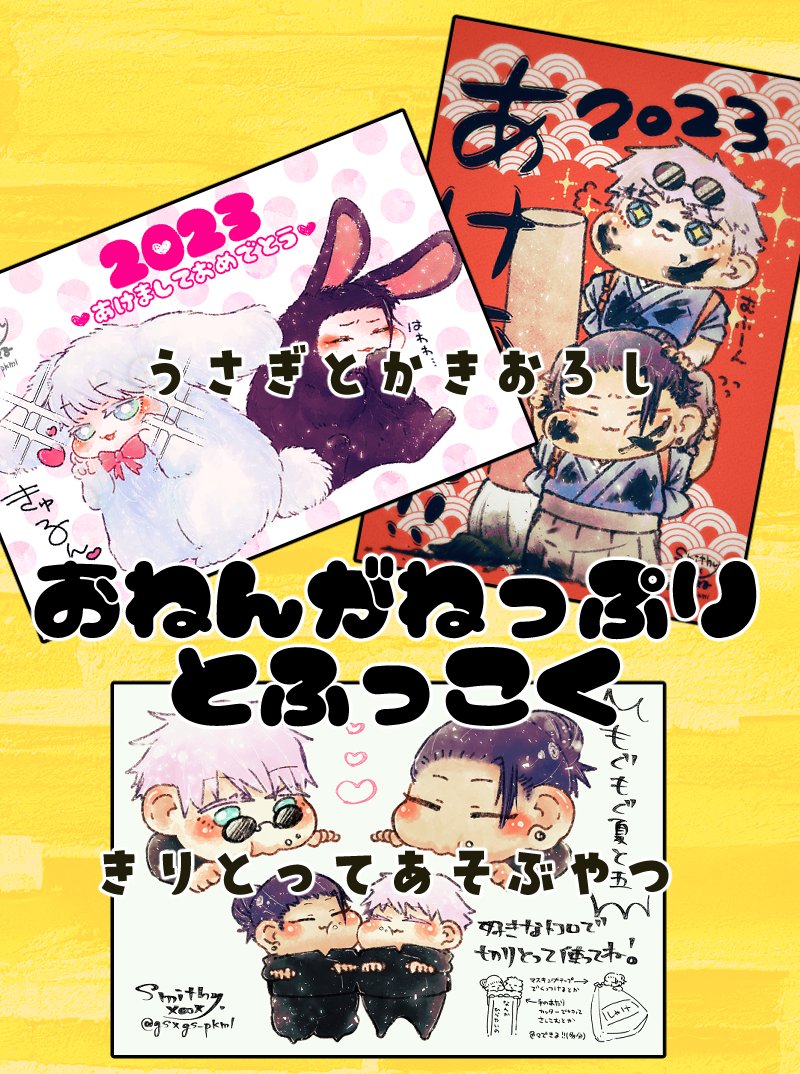 #725NYP2おしながき #725NYP2イラスト #725NYP2小説 年末年始の夏五イベント開催おめでとうございます〜!🎉✨ GEGO1あ2でスペースいただきました🙌 当日はネップリ(お年賀と復刻)、間に合えば小説展示(アンケで票いただいた作品諸々)を順次公開予定…のはず!仕事ありますががんばります〜💪