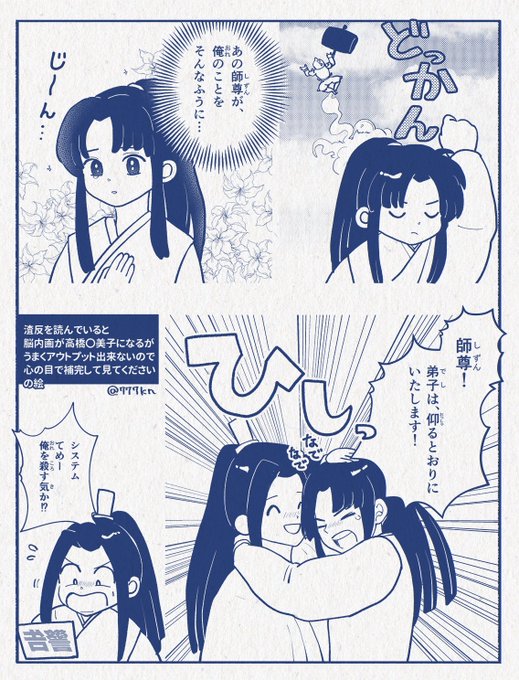 第3回まで読んで、どうしても渣反の脳内映像が…だんだん…高橋留〇子先生の絵になってしまう…というのを伝えたかった画 画風を似せて描くのがあんまり得意じゃなくて頑張っても似なかったので脳内で補完してください!! #777knさはん感想文