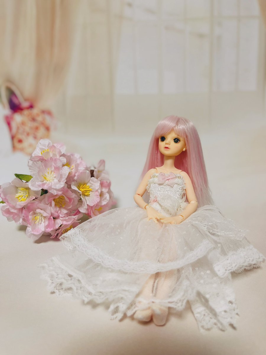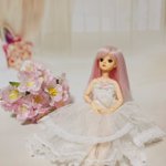 お題【はなよめ】 ꙳✧⌖ 花嫁の相手はだぁれ?꙳✧⌖ ドレスはゆかさま(@7thdahlia)からお迎えいたしました✨👗✨ #今夜のドール撮影120分一本勝負 #ノードール・ノーライフ #OBヘッド #7D服 👗✨