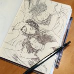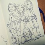 My character Astrid and her gang/boyfriends. 😁 Small stop doing inktobers and swap to biro pen. #Inktober #inktober2018 #ink #rpg #7thSea #fantasy #characterdesign #moleskineart #penart #polylove #originalcharacter zpr.io/6Fzc8