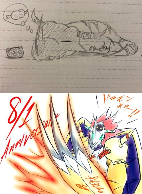 #8月1日はデジモンの日 昨日は寝て曜日とかヌかしてましたが、 8/1にはちゃんと究極体までワープ進化しましたとさ♪ #男は黙ってウォーグレイモン #デジモンアドベンチャー #デジモン #イラスト #絵描きさんと繋がりたい #夏休みはフォロワーさんが増える #illustration