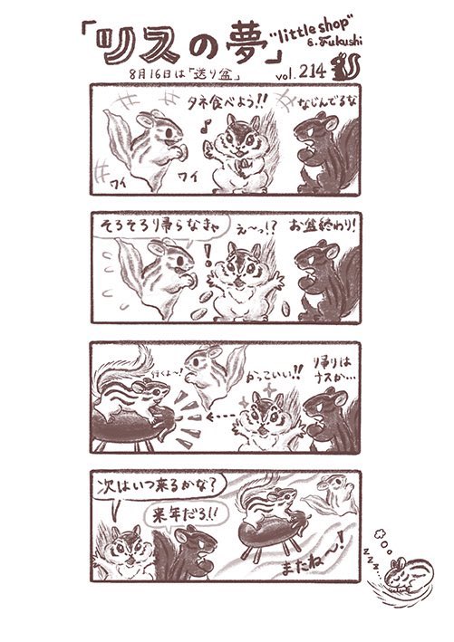 #1日1絵 #8月16日 の過去の絵。 1枚目 マンガ「リスの夢」 #お盆 2枚目リスのコムギ。 3枚目 イベントに参加した年も。 4枚目 @chipmunk_earth のくるみちゃん他、カフェのリスさん。 #リス #シマリス #イラスト #illustration #illustrator