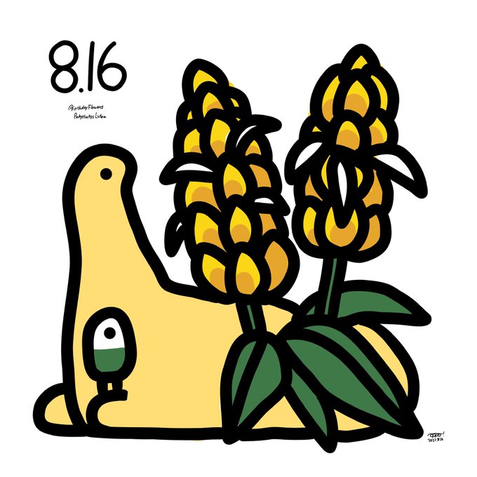 #今日は何の日 ————— #8月16日 ————— #誕生花 #パキスタキス・ルテア ふしぎな形の綺麗なお花 ————— #おっぽーイラスト #おっぽーの今日は何の日 #おっぽさんとこっぽちゃん #1日1絵