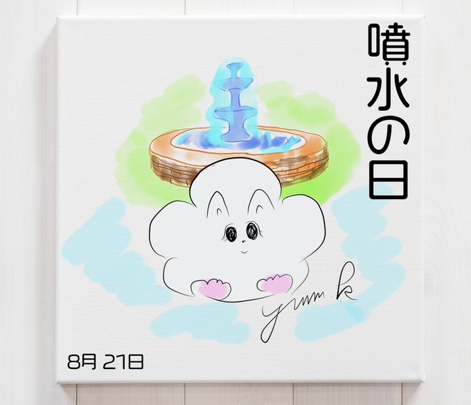 今日は噴水の日 1877年、東京・上野公園会場中央の人工池に日本初の西洋式の噴水が作られたそうです #今日は何の日 #8月21日 #1931年 #第1回内国勧業博覧会 開催 #落成したのは9月8日 #イラスト #イラストのあるくらし #アートのあるくらし #yume.k #エレン #どれさぽ