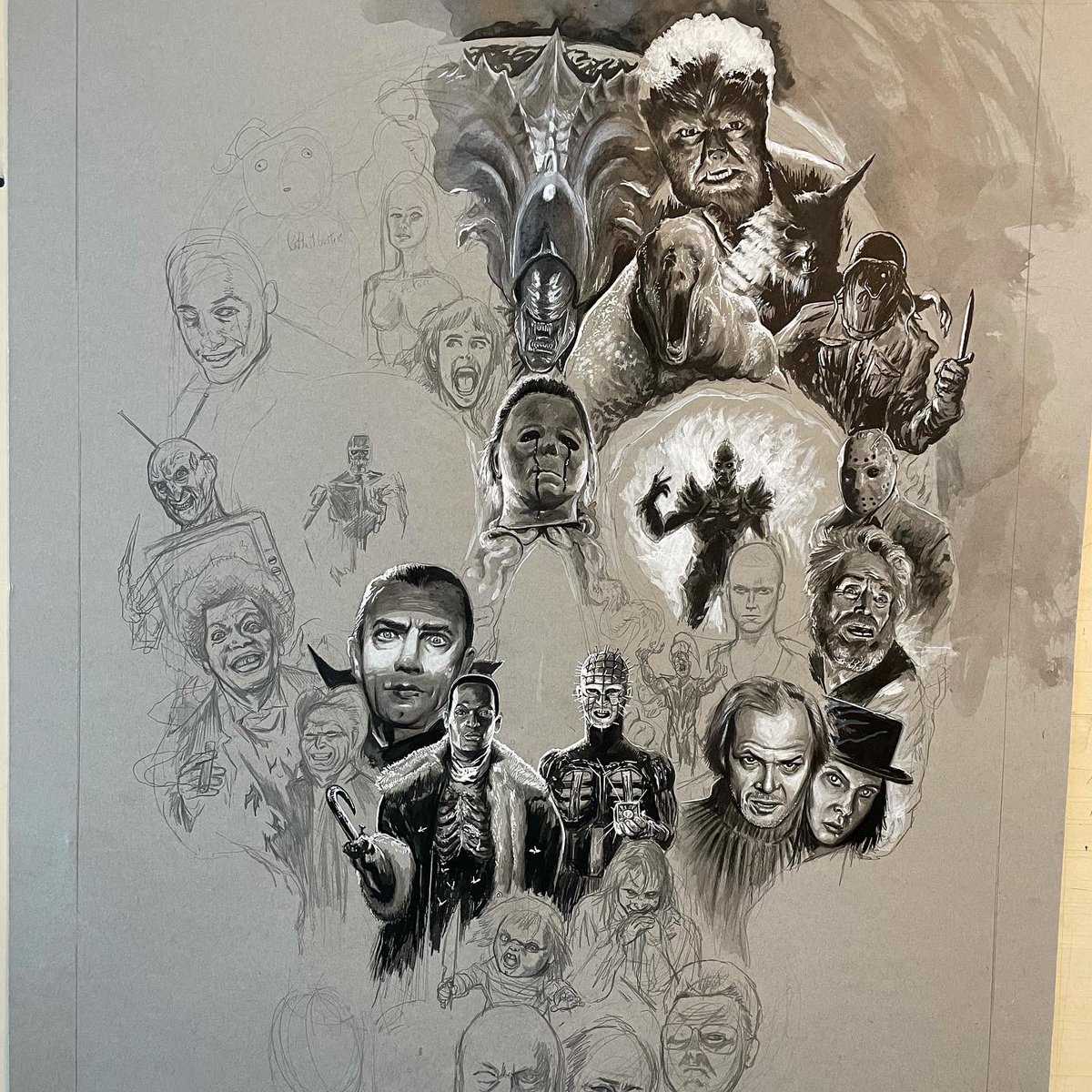 A few years back, I tried to do #inktober. I had a ton of cardstock and tried my hand at it Instead of doing prompts I chose to do horror movies. #FridayThe13th #JasonVoorhees #johncarpenter #thething #thehowling #ringu #thering #sadako #werewolf #80shorror #horromovies
