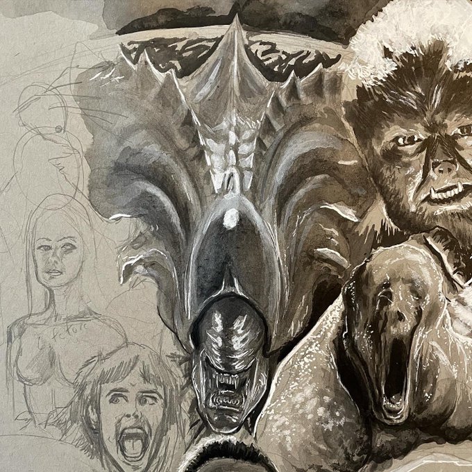 Inktober day 6: The Howling (1981) and I can hear the buzz in my ear already “why didn’t you do Howling 2: Your Sister is a Werewolf?” Folks there’s always next year! #willshorrortober #thehowling #ink #tonepaper #joedante #horror #80shorror #inktober #inktober2021 @joe_dante