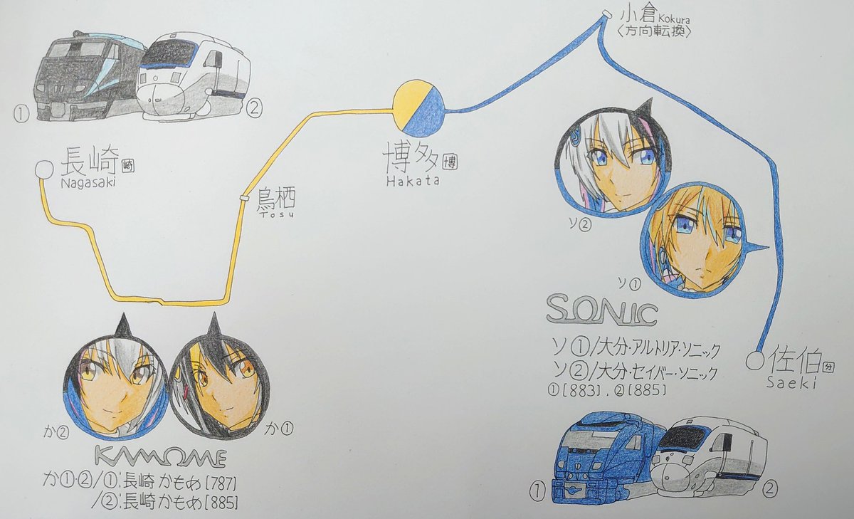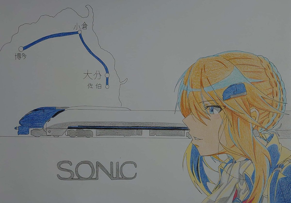 #鉄道 #絵描きさんと繋がりたい #イラスト #鉄道擬人化 #883系 #ソニック #フェアリーレイルウェイズ JR九州の騎士王特急 \SONIC/ ブルーリボン賞&ブルネル賞をW受賞した名誉ある振り子式特急! シンプルなソニックブルーに冴えるロゴがカッコ過ぎる! 一度見たら忘れない…