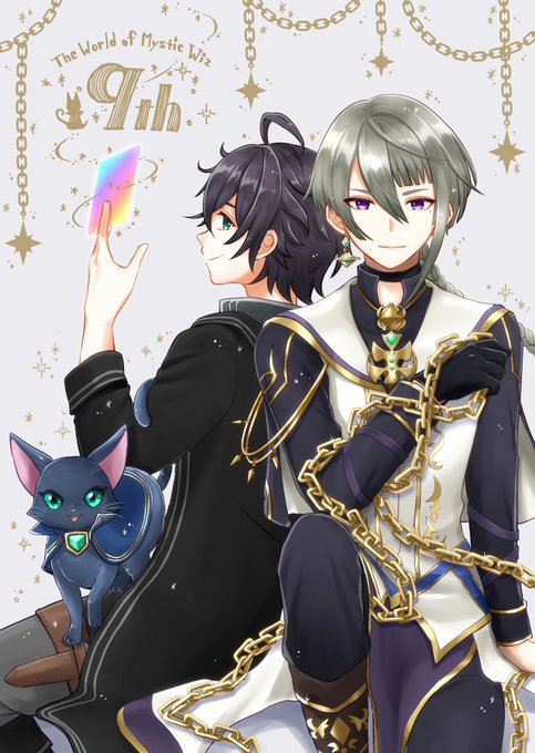 #9周年バーチャル黒ウィズルーム トウマさんご生誕8周年おめでとうございます❣️ 誰がなんと言おうとトウマアマノ先生です😇衣装捏造ごめんなさい🙏 …というお祝い絵を描いていたら黒ウィズ自体ももう9周年なのだなぁ~ということで、無理やり記念ルームのタグに持ってきた絵です 八百万4大好き🙌