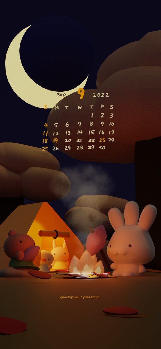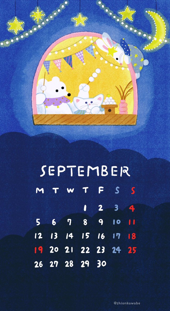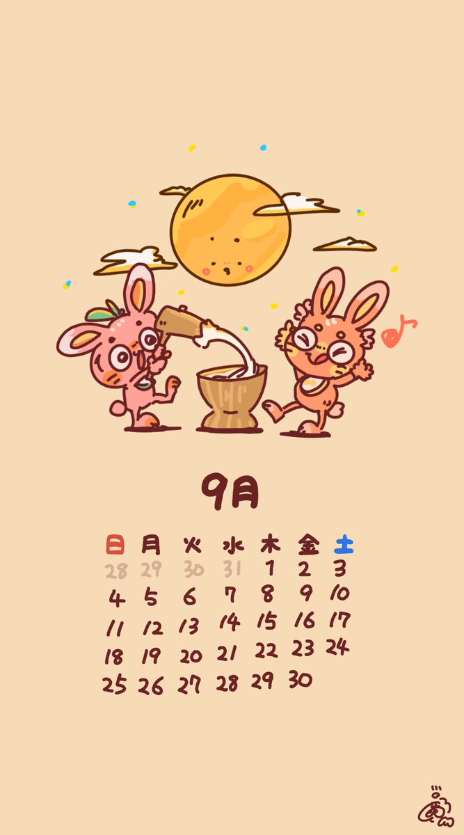 【🎑9月のカレンダー🎑】 白玉本塁打競走(ホームランダービー)!! むにえる大歓喜の食べ放題イベントです笑笑 満月のデザインで2パターン作りました✨ 9月もゆるく乗り越えましょう✊ #きゃるろっとあんどむにえる #きゃるむに #カレンダー #9月カレンダー #絵描きさんとつながりたい