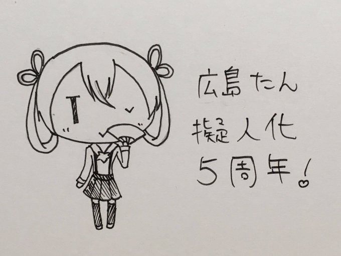 #広島たん @bic_hiroshima 店舗誕生5周年、おめでとうございますー! 広島の人形を検索したら三次人形というのが出てきてそんな感じにと思ったけどうまくいかずこうやって云々言い訳が必要な状況(*゚ー゚)> #9月14日は広島たんのバースデー #ビッカメ娘を描き隊