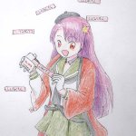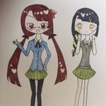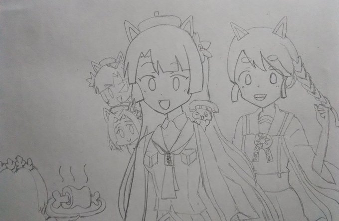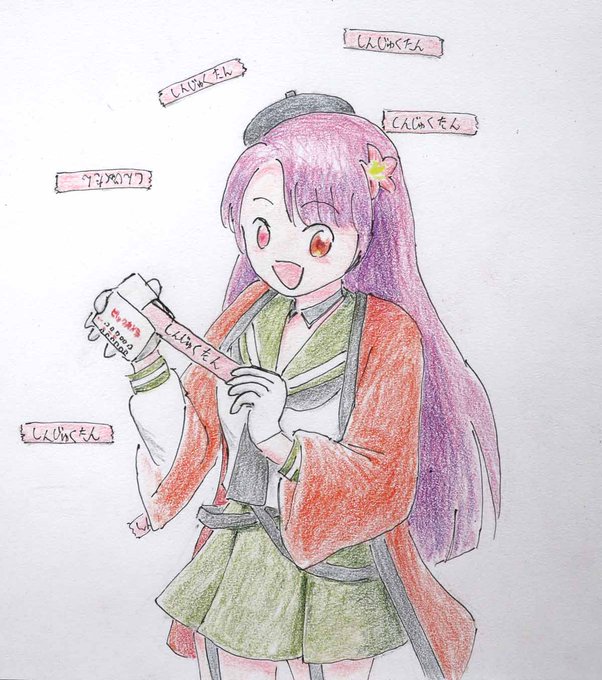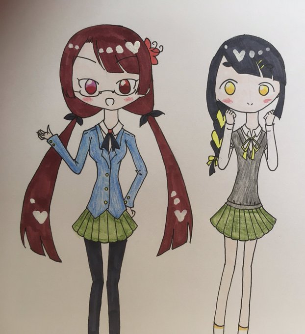 #9月27日は調布たん擬人化5周年 #9月27日はしんじゅくたんのバースデー お祝いにイラストを描きました! #しんじゅくたん 、 #調布たん 、おめでとうございます! にゃー🎉(≧▽≦)🍖🐈️ #さがみたん #新宿西口たん #新東たん #ビッカメ娘 ( #ナイセン ) #ビッカメ娘を描き隊 #ファンアート #色鉛筆