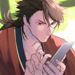 #9月3日は刀帳93番の陸奥守吉行の日 #刀帳No93で9月3日は陸奥守吉行の日 ご飯中にカメラを向けたらカメラ目線でふざけてくれるむっちゃんと、端末を操作する時の真面目な顔のむっちゃんです。 むっちゃんがいつも素敵な明日を迎えられますように🌸