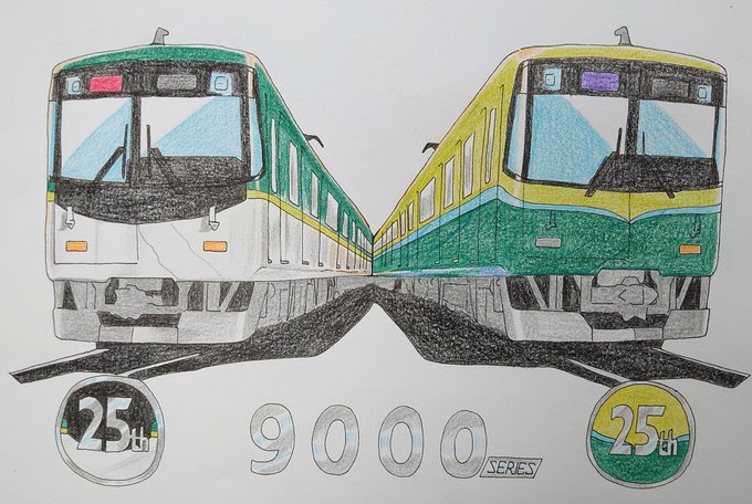 #京阪電車 #9000系 #セミクロス車 #9000系25周年 #イラスト #絵描きさんと繋がりたい 今年で\生誕25年/ 京阪初の元祖“セミクロス”ことイケメン顔の9000系 旧塗装(ブルーライン入)もカッコ良かった!!