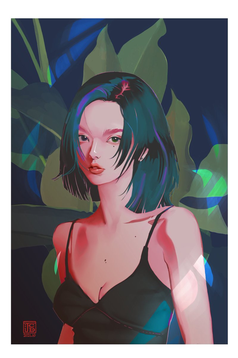 Added a background to this 90s girl I painted earlier. I like how it turned out. Lemme know your thoughts😊 #90s #woman #美人 #beautiful #plants #leaves #植物 #90年代 #イラスト #digitalart #digitalillustration #90sfashion #illustration #characterart #characterdesign #キャラデザ