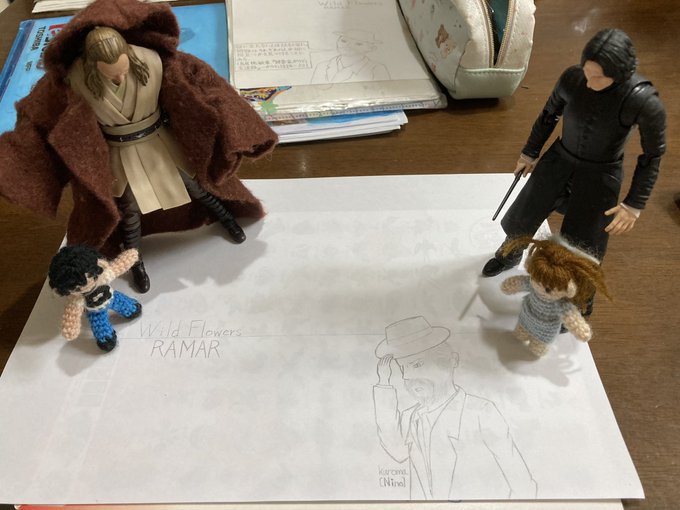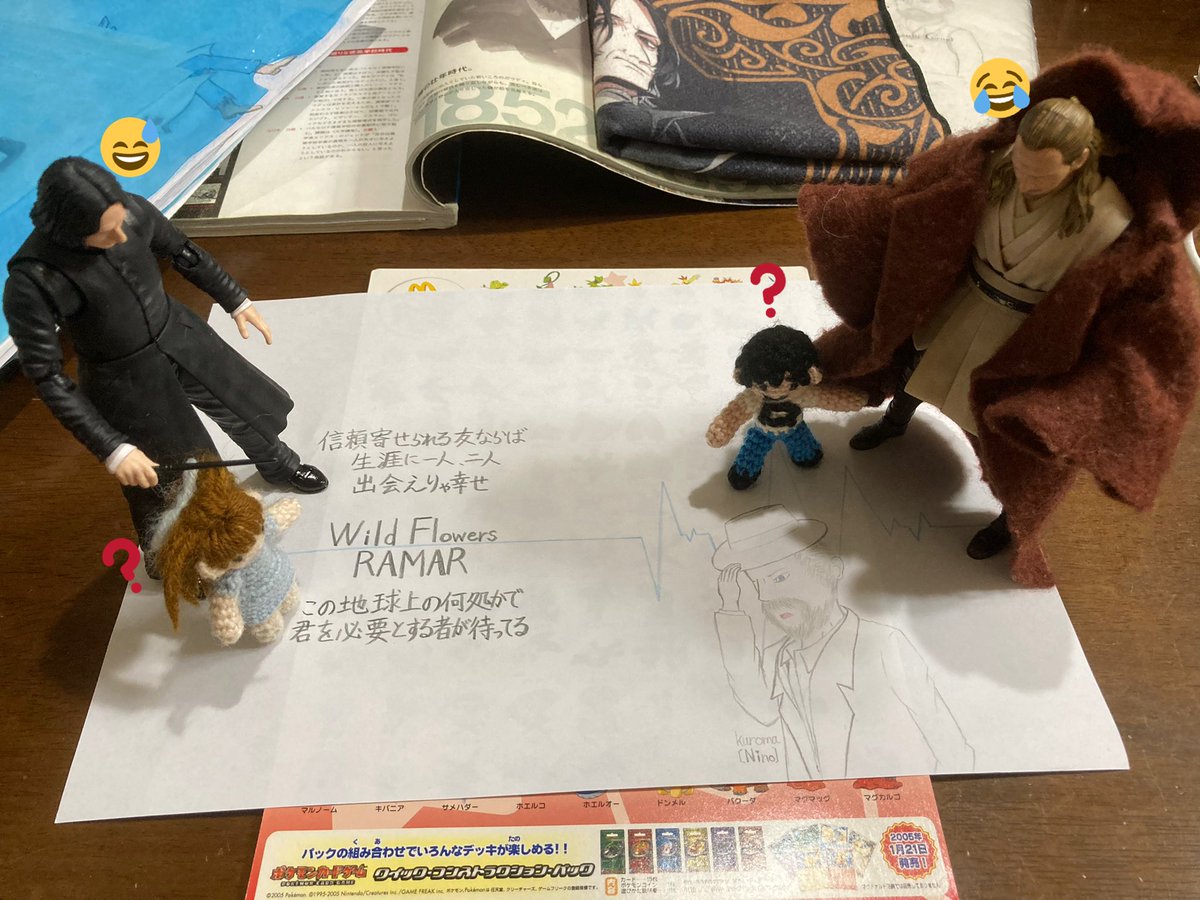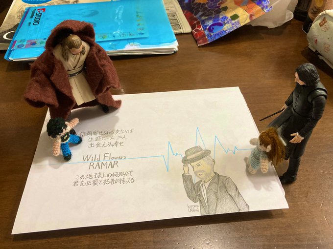 本日は、ガンプラ制作作業は休みとなります🙇♀️💦✨。 絵の中、また1人増えましたww🤣✨。 …そんな中、何やら楽しそうな…(笑)🤣😂💕✨。 #ガンプラ制作作業休みのお知らせ #クワイガンジン #セブルス・スネイプ #Rくん #Aちゃん #イラスト #まほろば #藤巻亮太 #作業用BGM #Rくん達何やってるのww😂?