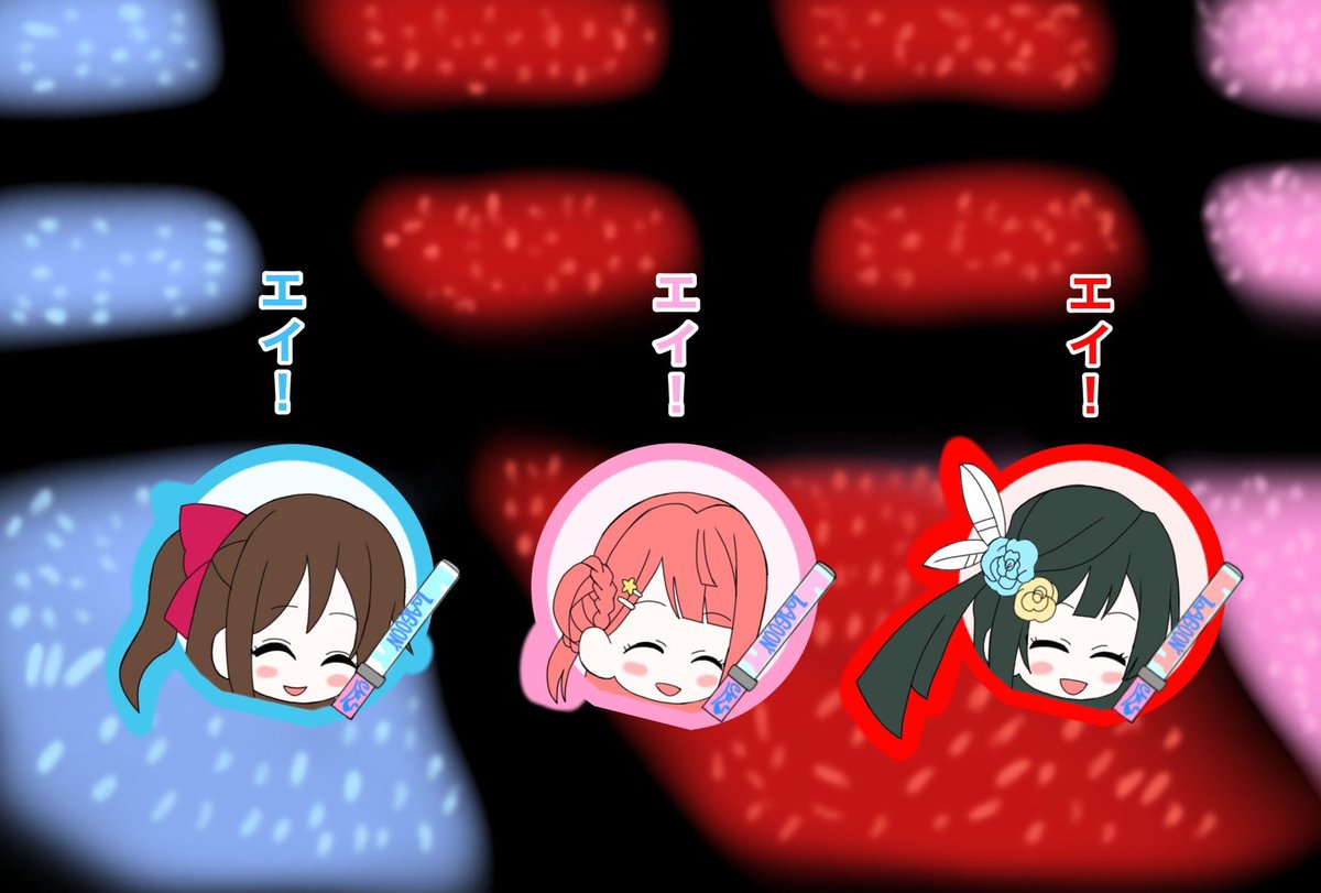 僕の見た虹ヶ咲A・ZU・NA LAGOONの会場のみんなとラブライブレードで、えい!をするイラストを投稿します。ピンク、水色、赤の光がキラキラしていて、とても楽しかったですね。今夜の配信楽しみです。^o^ #虹ヶ咲 #lovelive #A・ZU・NA #絵描きさんと繋がりたい #KATOSANイラスト
