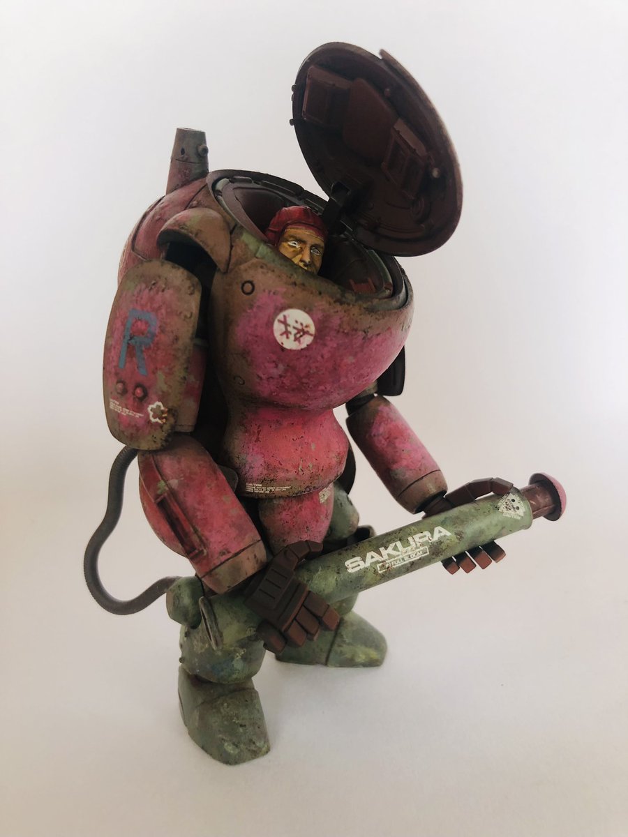 春期迷彩(桜迷彩)仕様のA8R8完成。筆塗りのレインボーの下地に2色のピンクを筆でペタペタ塗り重ねました。通常のSAFSよりもズングリした体型がいいですね。 #マシーネンクリーガー #パワードスーツ祭り #A8R8 #筆塗り