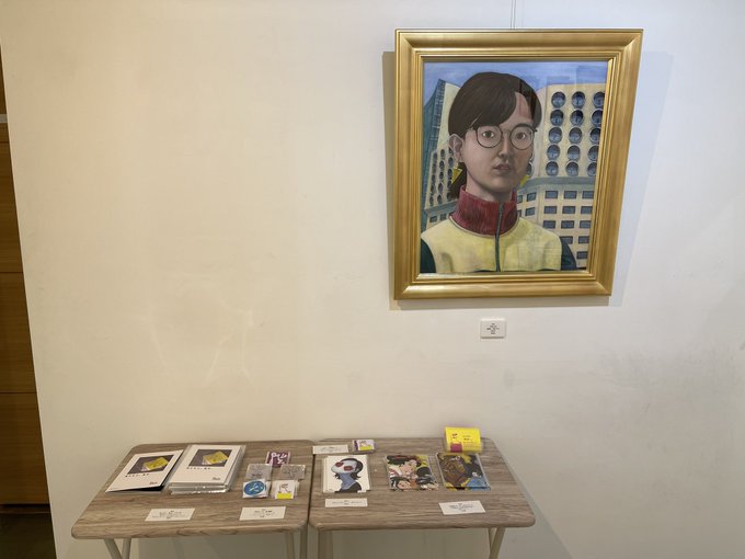 Reinさん(@Rein_art_ ) メインの油彩画のみならず、グッズ作品も含めて、発想がとても柔軟だなぁと感じました! ちびこいキャラクターかわゆい! #AAAアネックスギャラリー #水と油展 #油彩 #水彩 #oilpainting #waterpainting