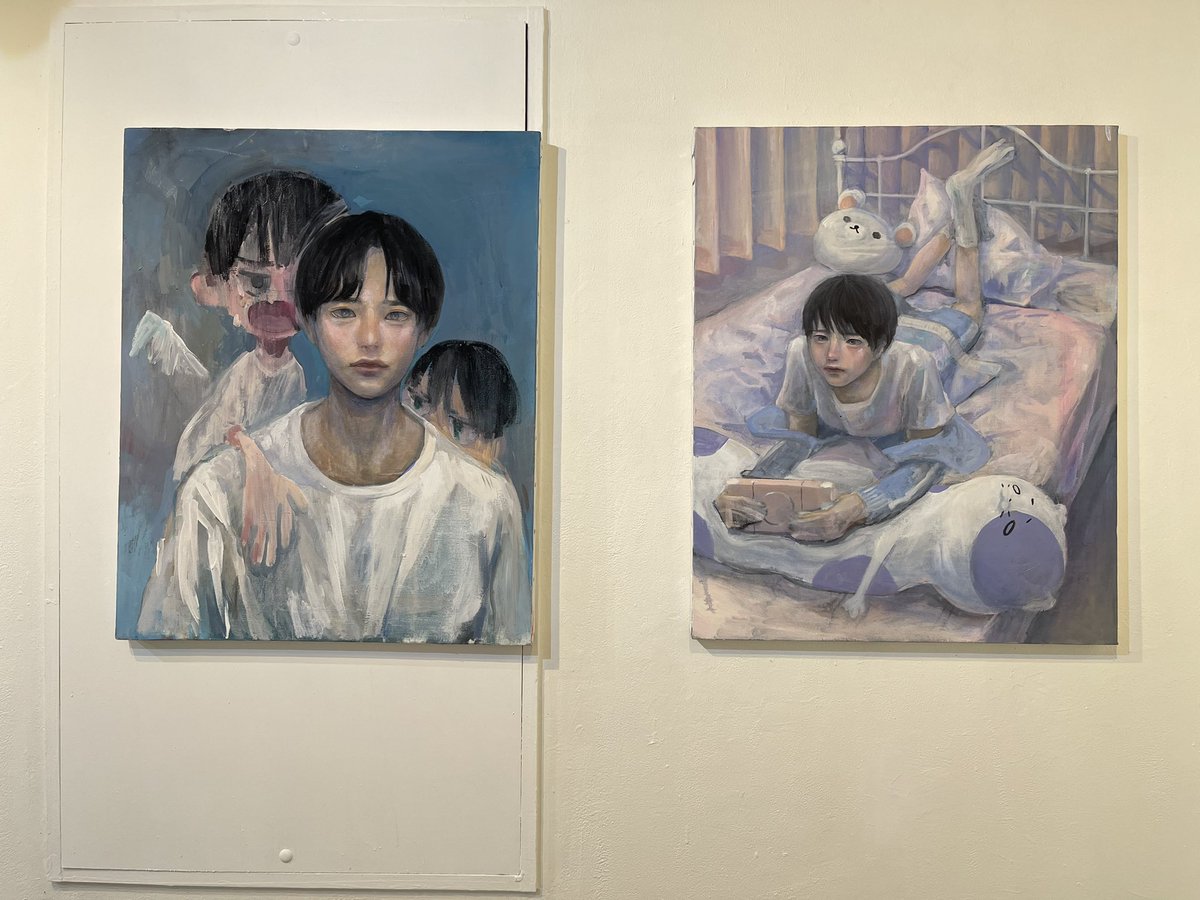 君の大腸菌さん (キャプションが無かったため、万が一作品を間違えていたらごめんなさい!) リアルな生活感と不思議な精神世界が上手くマッチした独特の作品たちでした リアリティとデフォルメのバランスが凄いです #AAAアネックスギャラリー #水と油展 #油彩 #水彩 #oilpainting #waterpainting