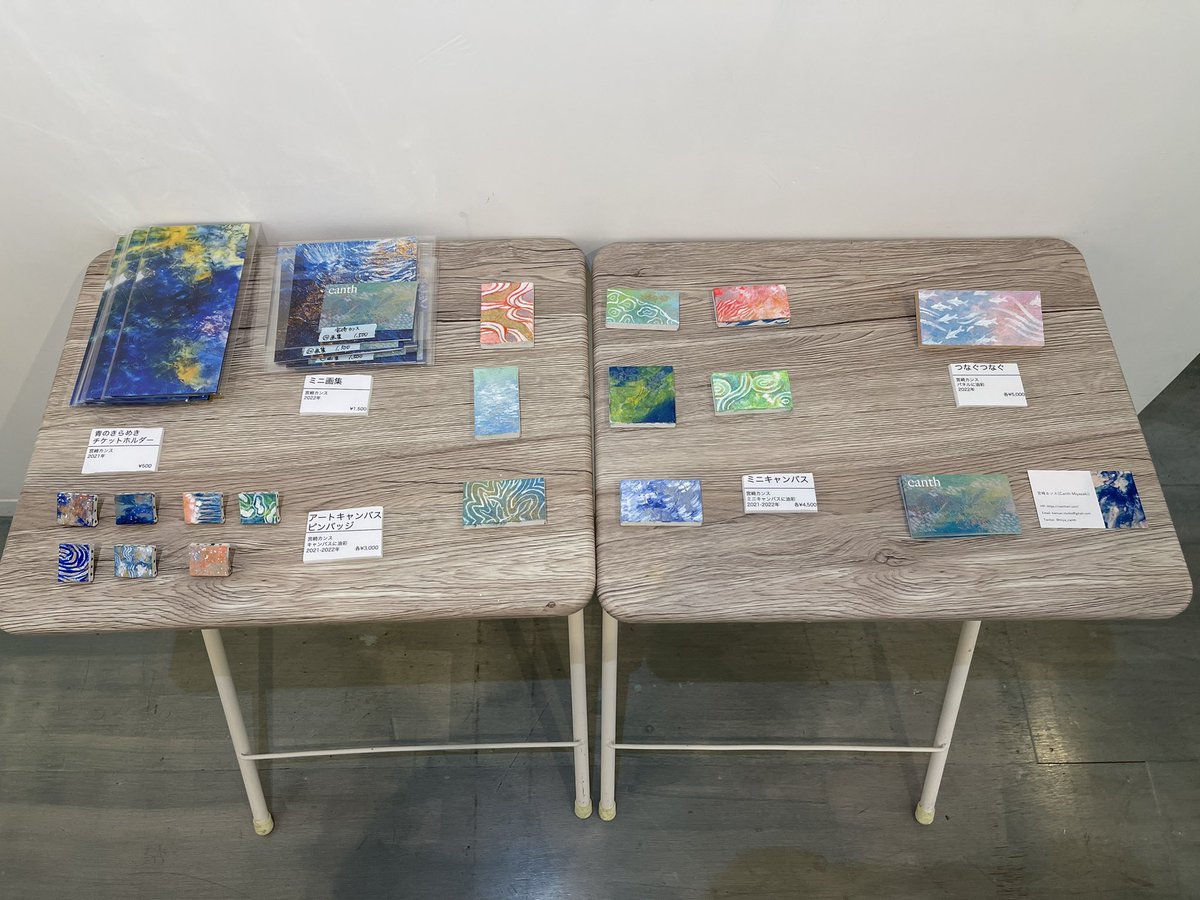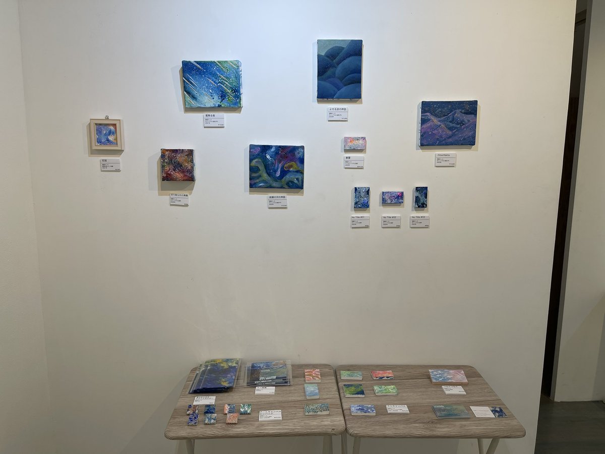宮崎カンスさん(@miya_canth ) ビー玉や万華鏡を見ているような、いろいろな動きや色合いの作品たちが目に楽しいです! ちっこいキャンバスがたくさん並んでいる様はとてもかわゆいです #AAAアネックスギャラリー #水と油展 #油彩 #水彩 #oilpainting #waterpainting
