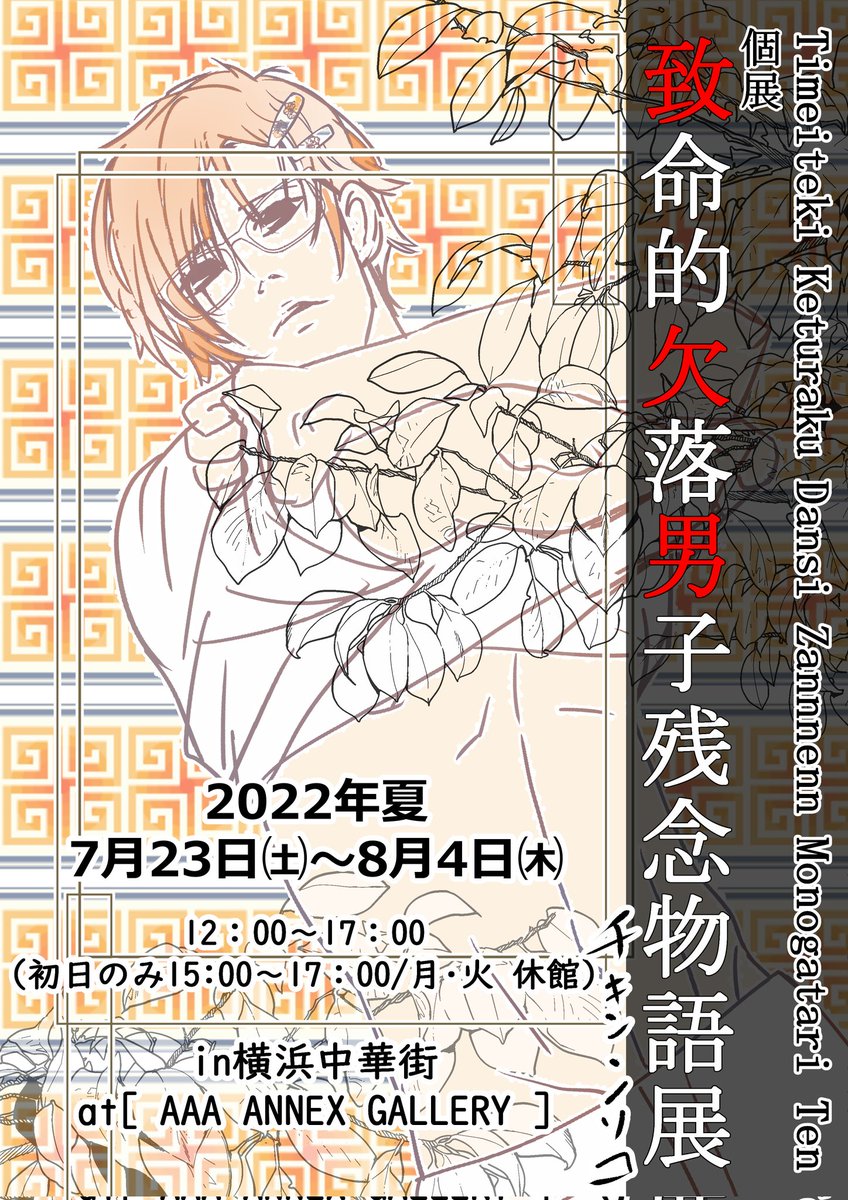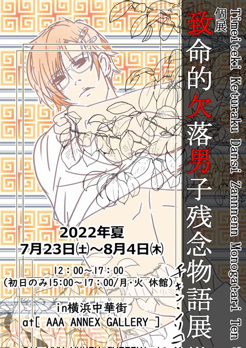 ☀️展示のお知らせ🌙 横浜中華街にあるギャラリー AAA ANNEX GALLERY様にて個展をやらせて頂くことになりました❗ 欠けてるからこそ尊い男子達の祭典👦🏮夏のご予定に横浜旅はいかがですか|゚Д゚)))個展ボッチ在廊予定なので遊びに来て頂けたら…泣いて喜びます(;ω;)💓 #AAAアネックスギャラリー