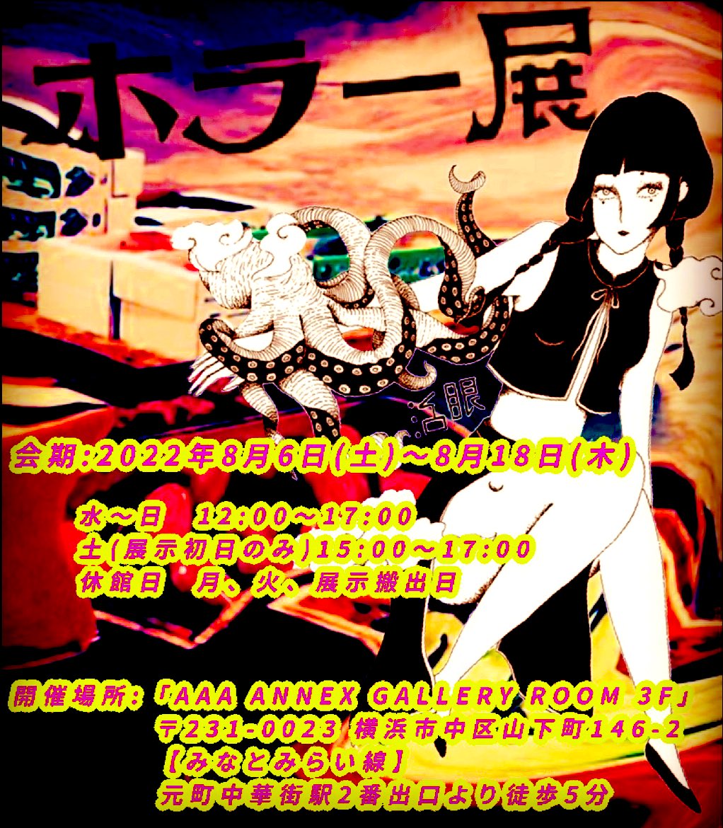 🌕お知らせ🌕 AAA ANNEX GALLERY様にお誘いいただき、8月6日〜18日「ホラー展」に出展させていただくことになりました! 私は怪異、呪術をテーマに既存の作品も含めて展示します。グッズもアルヨ ~ 入場無料なので是非遊びに来て下さい!8/6.7在廊予定です🦭 #AAAアネックスギャラリー #イラスト