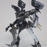 SchwarzerGeist / Zhenskiy:A 「NXに登場するアグラーヤがLRまで生き残っていたら?」と脳内仮定で製作しました。 一部の兵装を変更して、ミサイルハッチやインサイドを再現。あと本編では真っ黒な機体ですが、紺寄りにして闇に溶け込まない黒を目指しました。 #ACコン2022完成 #アーマードコア