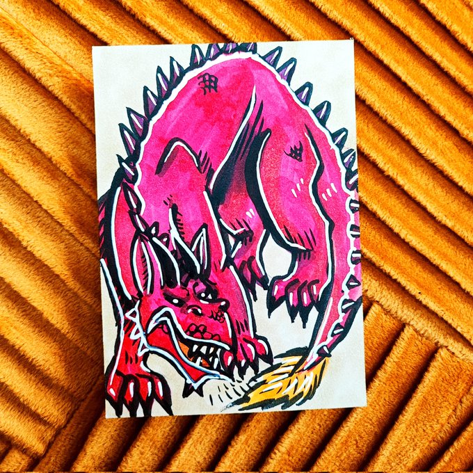 Day 23: Warning If it arches it's back and hisses, it's an angry cat. Err I mean a dragon. I'm using inktober prompts from @coinswallow this year because they all sparked joy! #inktober2022 #coinswallowinktober #mask #inktober #drawtober #ATC #ACEO #artisttradingcard