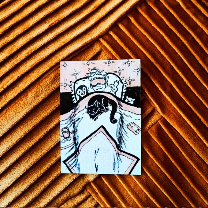 Day 22: Debt Tom Nook sleepy easy while you try to pay off your debt. I'm using inktober prompts from @coinswallow this year because they all sparked joy! #inktober2022 #coinswallowinktober #mask #inktober #drawtober #ATC #ACEO #artisttradingcard #drawtober2022 #prompt21