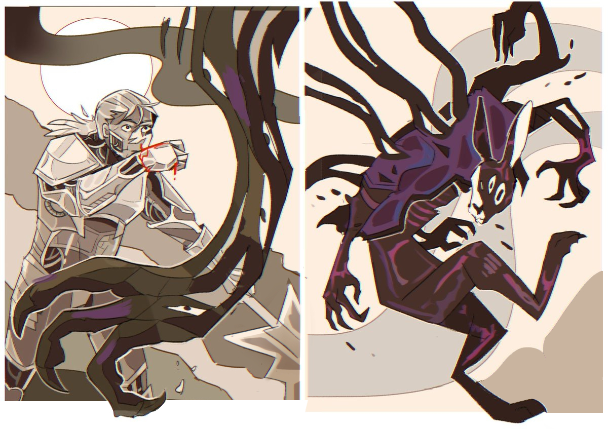 A Lapin and Theo for @FanaticofBeads. Calroy gets a lot of attention for being a walking piece of cake that I feel like we don't really talk about how there's a Giant bear and rabbit in the party😭 #acoc #crownofcandy #dimension20 #fanart