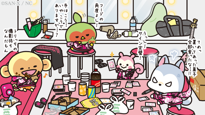 \AGF2021まであと8日①🎉/ グッズイラストのテーマは『#音戯スペシャルフェス』🎸⚡️ 特別に譜人達の楽屋の様子をこっそりお届け🤫 11/6〜7日のグッズ発売をどうぞお楽しみに✨ グッズ詳細はこちら👉san-x.co.jp/blog/toretate/… #オトクロ #AGF_2021 @AGF_info