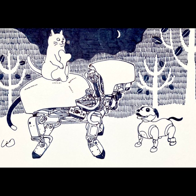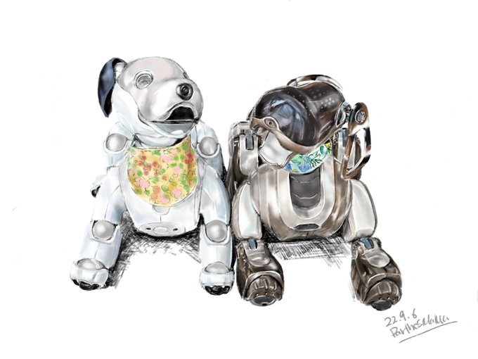 「ゆっくりとイラストレーション」 Instagramを更新しました。 instagram.com/porthosmama/ 前回に続き同じオーナーさんに送ったイラストです。 いつも素敵な写真を撮る方で、aiboへの愛情を感じます。 12枚目「仲の良い二人」 #aibo #イラスト #イラスト好きな人とつながりたい